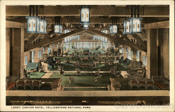 Front: Copyright by Gifford for NPRRCO. LOBBY, CANYON HOTEL, YELL OWSTONE NATIONAL PARK. Back: R-57451 Quality Line Bloom Bros.Co. Minneapolis 4.00
