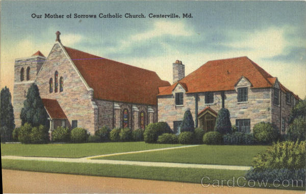Front: Our Mother of Sorrows Catholic Church, Centerville, Md. Back: 76437 MADE IN U., S. A PUB. BY DEL MAR NEWS AGENCY, WILMINGTON, DEL.