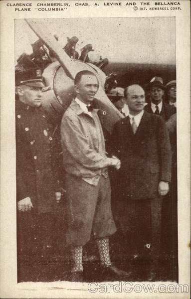 Front: CLARENCE CHAMBERLIN, CHAS. A. LEVINE AND THE BELLANCA PLANE '*COLUMBIA' © INT. NEWSREEL CORP. Back: wa ALL RIGHTS RESERVED - MAX STEIN PUB. MOUSE CHICAGO miting POS TRADE