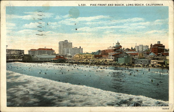 PIKE FRONT AND BEACH, LONG BEACH, CALIFORNIA.