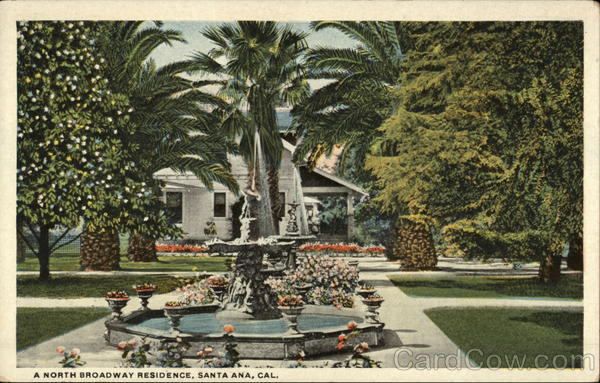Front: A NORTH BROADWAY RESIDENCE, SANTA ANA, CAL. Back: DHP A-58659 PUBLISHED BY F. W. WIESSEMAN, SANTA ANA, CAL. C.T. AMERICAN ART 18 PREMA