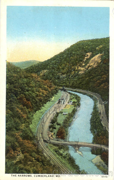 Front: THE NARROWS, CUMBERLAND, MD. 67791 Back: 20 PUBLISHED BY THE NEFF NOVELTY CO. CUMBERLAND, MD. C. T. AMERICAN ART COLORED. CE 25 Fade Mar