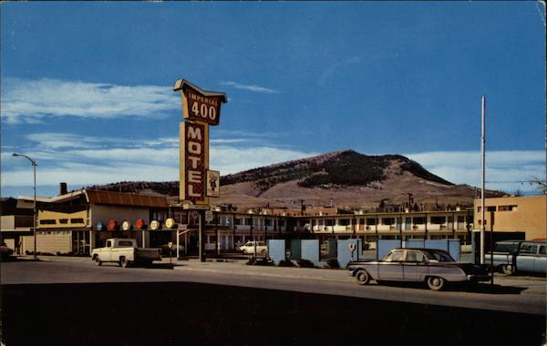 | Imperial 400 Motel, 524 N. Last Chance Gulch, Helena, Montana Phone: 442-0600 America's Fast Growing Partnership Chain. All New! Heated Swimming Pool, Room TV, Phones, Free Coffee, Air Conditioned Rooms. Free Advance Reservation Service/ Coast to Coast |