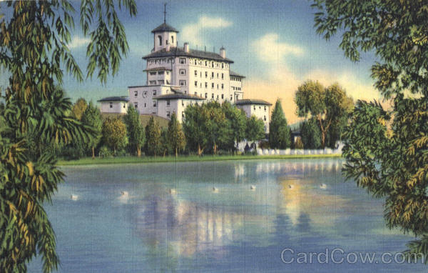 2106_VISTA OF BROADMOOR HOTEL FROM THE LAKE, PIKES PEAK REGION, COLORADO 5A-H277 "c. T. ART-COLORTONE," SANBORN SOUVENIR CO., DENVER, COLO.