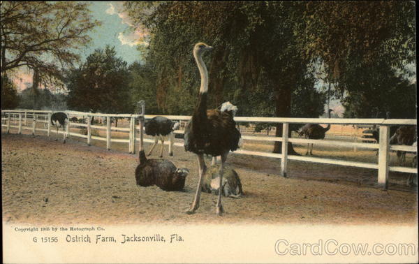 Front: 17 Copyright 1905 by the Rotograph Co. G 15156 Ostrich Farm, Jacksonville, Fla. Back: 12.00 Tho Rotograph Co., N. Y., City. (Germany.)