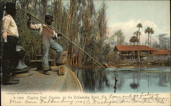 9 15653 Gigging from Steamer, gn the Ocklawaha River, Fla. Come and go fishing