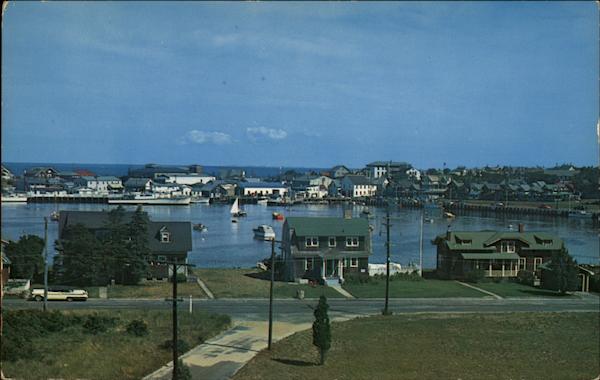 OAK BLUFFS HARBOR Martha's Vineyard, Mass. Popular island port for yachtsmen and fishermen. Color Photo by Winthrop P. Moore Transcolor Corp., 527 Lexington Ave., N.Y. 17, N.Y. K Pub. by Mosher Photo Service 34738