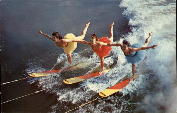 The famed aqua-ballerinas performing at Florida's Cypress Gardens. Palm Color Card Co., 333 N.W. 26 St., Miami, Fla. CGS143-3790B