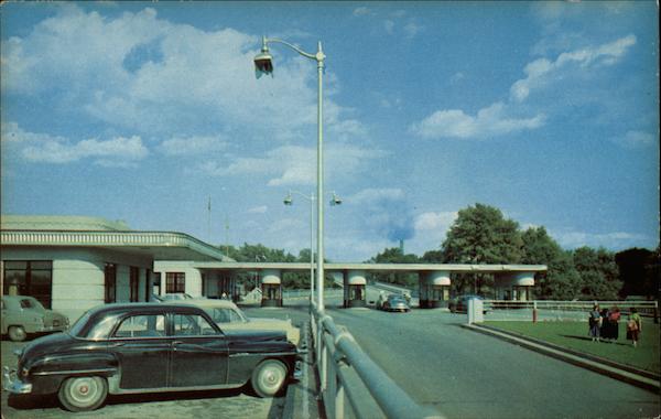 Entrance to the Famous Blue Water Bridge Port Huron, Michigan A Genuine Kodachrome Reproduction. The L. L. Cook Co., Milwaukee, Wis. Copyright 1952, The L. L. Cook Co. 60654