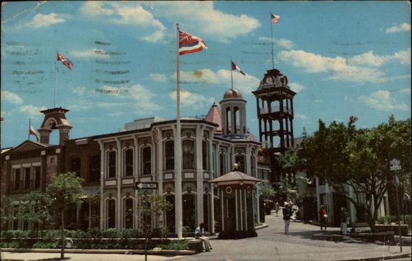 Old Hawaii with shops, restaurants, theaters, a flea