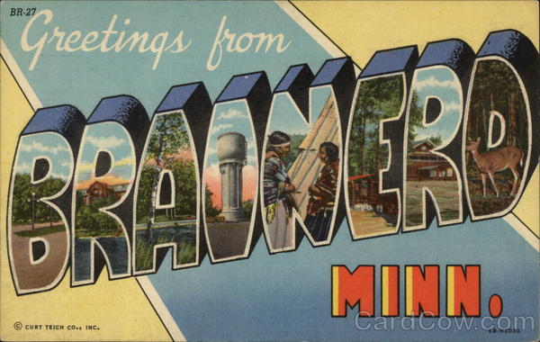 Front: BR-27 Gre etings from ww.w MINN. © CURT TEICH CO., INC. 6B-H2030 Back: NORTHERN MINNESOTA NOVELTIES, CROSSLAKE, MINN. سیله