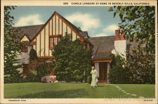 Front: 880 CAROLE LOMBARD AT HOME IN BEVERLY HILLS, CALIFORNIA PARAMOUNT STAR 3A-H1318 Back: WESTERN PUBLISHING & NOVELTY CO., LOS ANGELES, CALIF.