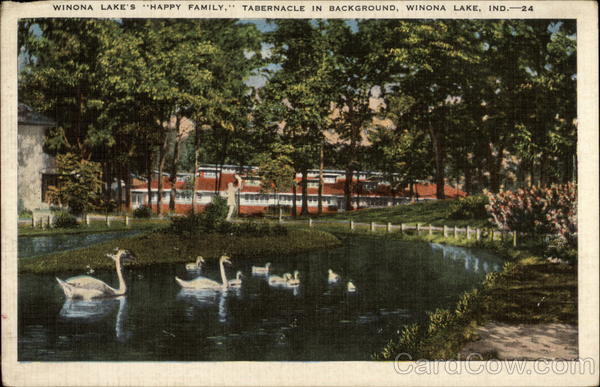 Front: WINONA LAKE'S "HAPPY FAMILY," TABERNACLE IN BACKGROUND, WINONA LAKE, IND.-24 Back: Се 6900 A “Natural Color Card” Made by E. C. Kropp Co., Milwaukee, Wis.-IHL