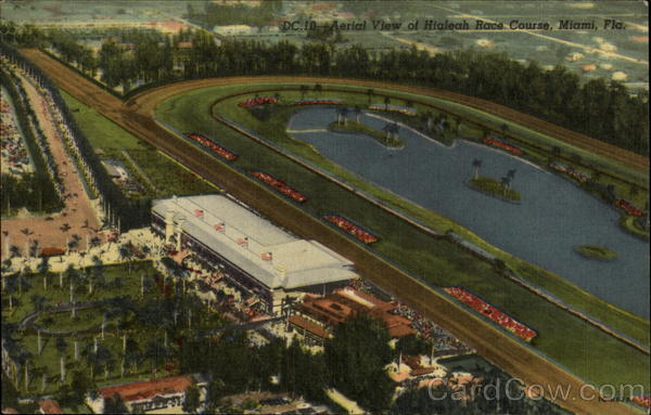 Front: DC.10 Aerial View of Hialeah Race Course, Miami, Fla. IC-H672 Back: GULF STREAM CARD & DISTRIBUTING CO., MIAMI, FLORIDA