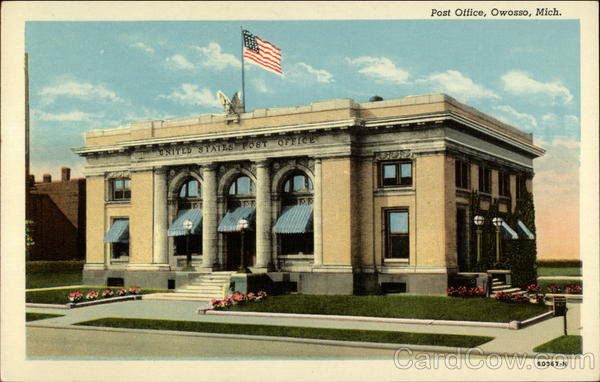 Front: Post Office, Owosso, Mich. UNITED STATES PO8T OFFICE 60367-N Back: OWOSSO NEWS AGENCY, OWOSSO, MICH.