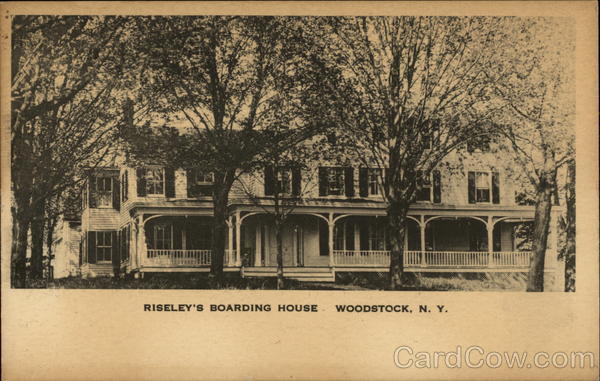 Front: RISELEY'S BOARDING HOUSE WOODSTOCK, N. Y. Back: PUBLISHED BY STOWALL STUDIOS, WOODSTOCK, N. Y. Post Cards of Quality. -- The Albertype Co., Brooklyn, N. Y.
