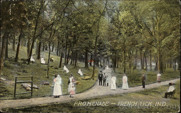 Front: PROMENADE FRENCH LICK, IND. Back: Igran parte fard IN ENTS ker & Meyer, Importers and Publishers, West Baden, Ind. so