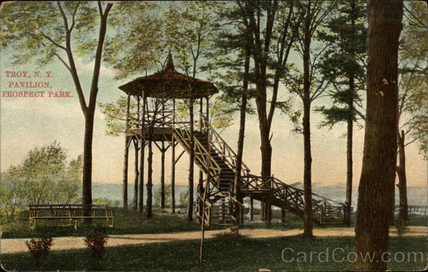 Front: TROY, N. Y. PAVILION, PROSPECT PARK, Back: 217 LARA Dean TRON ONE CU 5 PM 1910 22 Glen RS ku hanMade in Germany. re me time Loring Marjorie: her Han re Wooh miss Marjorie Marfield Char lemont Mass Mem ring بل SL CO E 7612