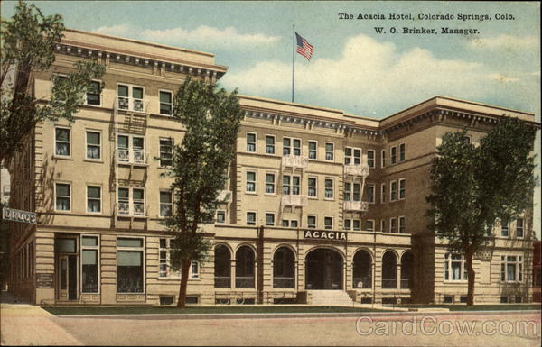 Front: The Acacia Hotel, Colorado Springs, Colo. W. O. Brinker, Manager. EE DKUCEI АCACIA Back: DOMESTIC: POST GRD