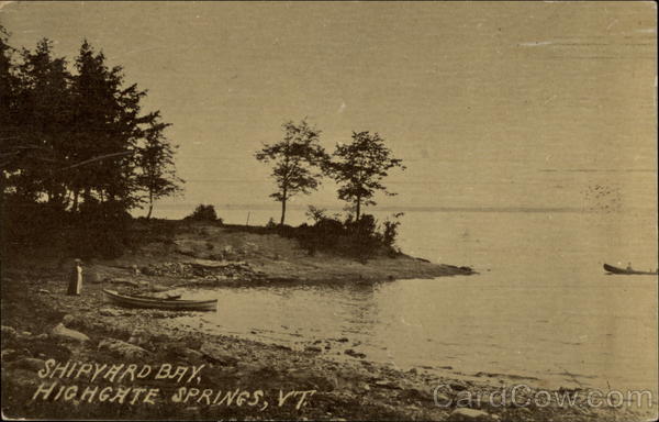 Front: SHIPYHRD BAY, HIGHGHTE SPRINGS, VT Back: Lud): J. V. Ilartman & Co., Boston, Mass., for 1. H. Felton. ', ' Post Cars es