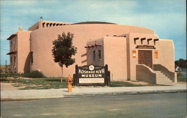 Front: KOSHARE KIVA KOSHARE KIVA MUSEUM Back: KOSHARE KIVA MUSEUM LA JUNTA, COLO. Pub. by Triangle Distributing Co., 514 South Tejon, Colorado Springs, Colo. 80903 S-14116-4