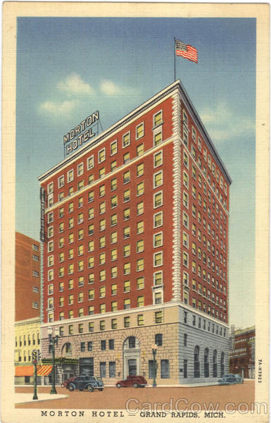 Front: MORTON EGE EEEE E MORTON НОТEL GRAND RAPIDS, MICH. 7A-H3923 | 门 A HH E Back: SHAW NEWS AGENCY, GRAND RAPIDS, MICH. sl