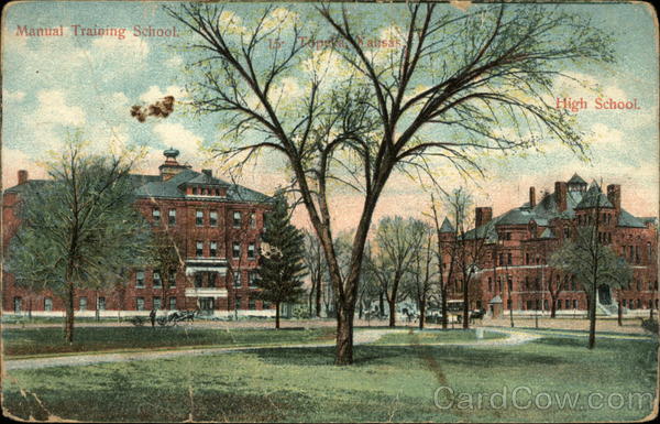 Front: Manual Training School ansas High School. Back: This Space For Writing Messages Made in Germany, M. L. Zercher Book & Stationery Co. Topeka, Kansas, Importers.