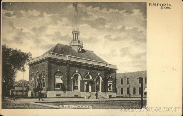 Front: EMPORIA. KANS. 33 EGKDALL & MCCARTY Y, POST OFFICE Back: Domestic 1 Ct. This space is for the Foreign 2 Cts. THE ALBERTYPE Co.I BROOKLYN, NY.