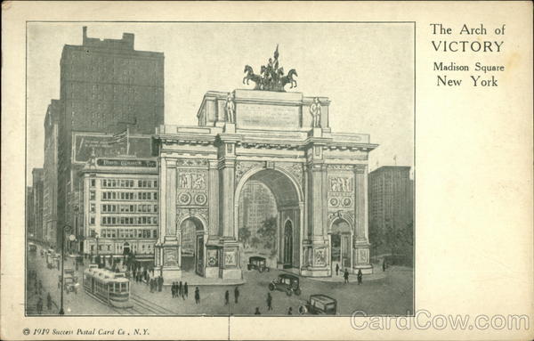 Front: The Arch of VICTORY Madison Square New York Thon. GnacK Tir © 1919 Success Pustal Card Co, N.Y. Back: Post ARD