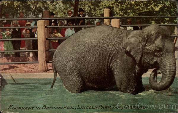ELEPHANT IN BATHING PoOL, LINCOLN PARK Zoo, CHICAGO.