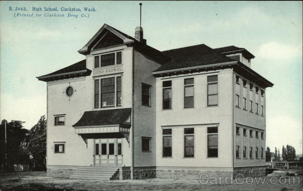 Front: B. 2068. High School, Clarkston, Wash. (Printed for Clarkston Drug Co.) HIDH SCHOOL Back: MAPENE JAMSON DENVER CO. PUBLISHERS This Space Can Be Used for a Written Message.