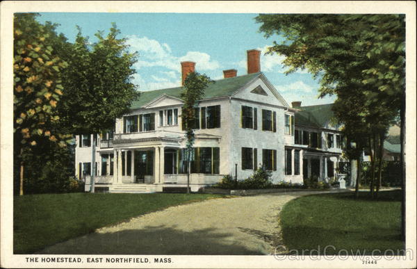 Front: THE HOMESTEAD, EAST NORTHFIELD, MASS. 71446 Back: 22 MADE IN USA PUBLISHED BY THE BOOKSTORE, EAST NORTHFIELD, MASS. C.T. AMERICAN ART