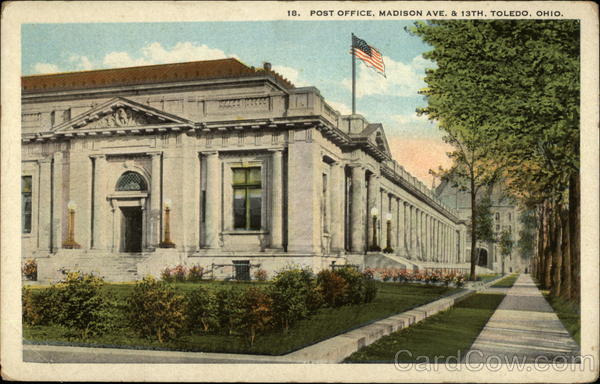 Front: 18. POST OFFICE, MADISS ON AVE. 8& 13TH, TOLEDO, OHIO. Back: HH Hamm (Toledo, Ohio PUBLISHED BY PROGRESSIVE NEWS CO., TOLEDO, OHIO. MADE IN USA