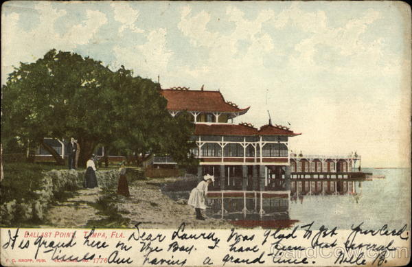 Front: 81 BALLAST POINT TAMPA, FLA. Laurely it Fan Near Lawru, har plads here in the Pract. is relinchame having a grand line. Mille B. is I hurled O. KROPP, "PUBL Back: 3 Post Cards PETER JAN ONE GENT S. Holders Rep