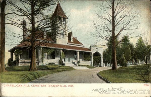 Front: ITTIT CHAPEL. OAK HILL CEMETERY, EVANSVILLE, IND. 2020 Marlha, Back: 35 Pla LNDINO SESOTESSOI 062IAT TARVNA 9021 Dast Care , SEP231 E 15PN 1907 UND 12- 20SAINI A. C. Bosselman & Co., New York, Miss Carrie Ruber Wodesville, R. Rt 23 nd