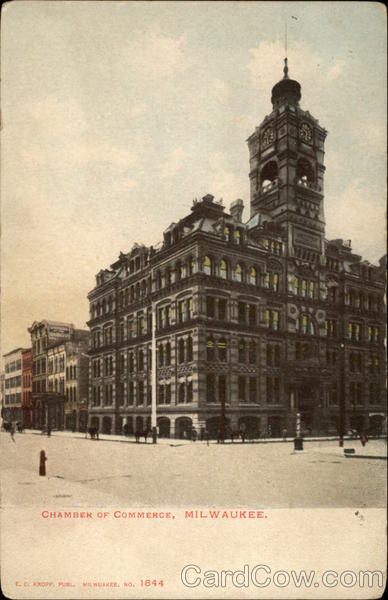 Front: FO 27 CHAMBER OF COMMERCE, MILWAUKEE. E. C. KROPP, PUBL. MILWUAKEE, NO. 1844 Back: FOR EIGN 3.00