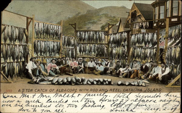 A 5 TON CATCH OF ALBACORE WITH ROD AND REEL. CATALINA ISLAND