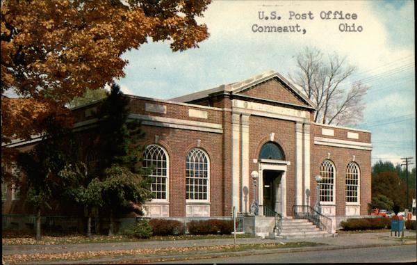 Front: U.S. Post Office Conneaut, Ohio Back: K8532 6883 POST-GARD *Lusterchrome“ REG. V. S. PAT. OFF. MADE ONLY BY TICHNOR BROS., INC., BOSTON 15, MASS. U. S. POST OFFICE Conneaut, Ohio PUB. BY MURRAY'S, CONNEAUT, OHIO