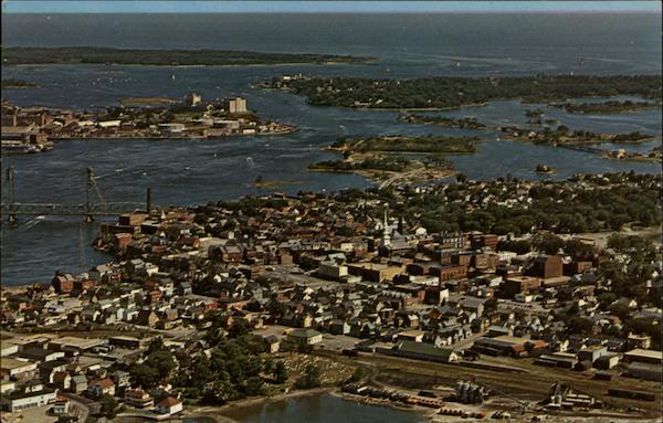 NH500 A section of the city and harbor of PORTSMOUTH, NEW HAMPSHIRE as seen from the air. Photography by Frank L. Forward Published by Forward's Color Productions, Manchester, Vt. Koppel Color Cards. 64027 HAWTHORNE, N. J.