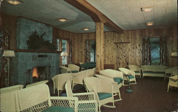 PORTAGE POINT INN Onekama, Michigan A View of the Lobby. Dextone Made Direct from Kodachrome and Ansco Color By Dexter Press, Pearl River, N. y. Pub. by Freeman Studios, Berrien Springs, Mich. 49291