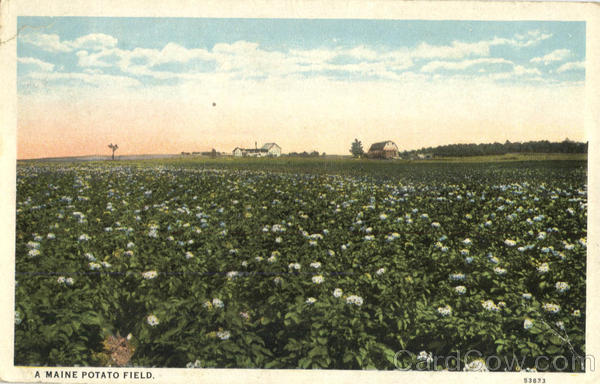 Front: A MAINE POTATO FIELD. 53833 Back: ✓ THIS SPACE FOR WRITING MESSAGES. AMERICAN ART COLORED HERE