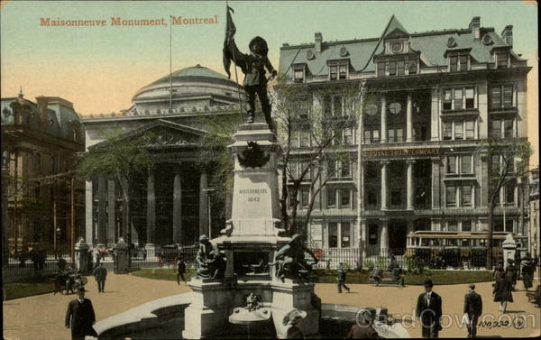 Front: Maisonneuve Monument, Montreal ROYAL TRUS COMPANY MAISONNEUVE 1642 100,092. Back: The Valentine & Sons' Publishing Co., Ltd. Montreal and Toronto HIE THROUGHOUT THE WORLD. FAMOUS VASSONS POST VE SONS