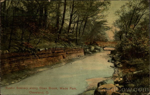 Front: Rustic Scenery along Doan Brook, Wade Park, Cleveland, O., Back: LAND วน EVE ahh are well WSEP26 - AM 1910 HO Evang Rod con eb zee eari irani 22 erurd Tas Estella Zen Wayne St st Corry.. 0: had test 2 Nuh