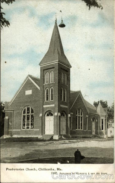 Front: Presbyterian Church, Chillicothe, Mo. 742 PUBLISHED BY GILBERT'S 5 AND 10c STORE Back: T C. U. WILLIAMS ALLOHOFFEE BLOOMINGTON, ILLINOIS To Stella, from her Father.