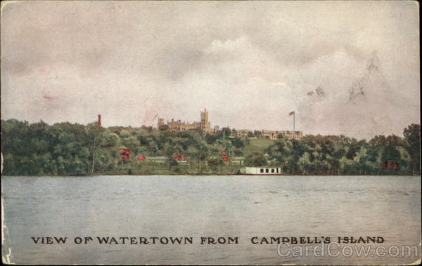 Front: VIEW OF WATERTOWN FROM CAMPBELL'S HSLAND Back: Ik pc 00 MESSAGE CAN BE WRITTEN ON THIS SIDE 100 ROCK ISLAND ROCK ISLAND POST CARD CO. ILL. Ilmma 90 A