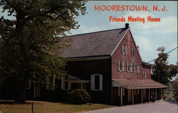 Many of the early settlers of Moorestown were Quakers. Their first meeting house was built here in 1700. Standing near the site, this present house of worship of the Moorestown Monthly Meeting (Religious Society of Friends) was erected over a century and a half ago in the year 1802 |