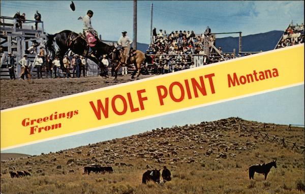 Front: 15 Greetings WOLF POINT Montana Back: FW 9060 MN HANDLEBAR GREETINGS Upper Scene FW-397 Let 'er Buck Lower Scene FW-395 Pastoral Scene BRAND © F. J. McCollom 1966, Far West Studios, Virginia City, Mont. S-62507L2