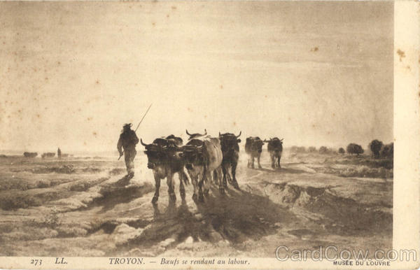 Front: 273 LL. TROYON. Bœufs se rendant au labour. MUSÉE DU LOUVRE Back: BRIEFKAART ОТКРЫТОЕ ПИСЬМО - TARJETA POSTAL Morgenstimmung. Sun-Rise P