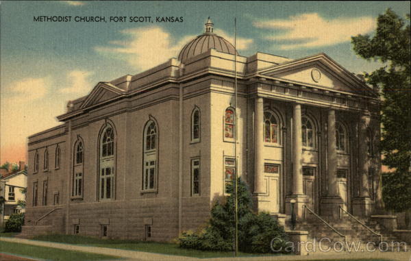 Front: METHODIST CHURCH, FORT SCOTT, KANSAS Back: 9848 Churches of all denominations are found at Ft. Scott, this being one of the newer church buildings Pub. by L. C. Waite, Fort Scott, Kans.