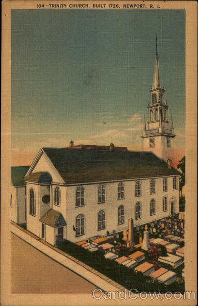 Front: 104:-TRINITY CHURCH, BUILT 1726, NEWPORT, R. I. 1415 Back: Pub. by Berger Bros., Providence, R. I. LIS CER BROS. HERS PROVIDENCE